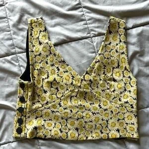 Really cute and colorful tank top with a sunflower floral design and button detailing on both sides. Missing one button. Size medium.