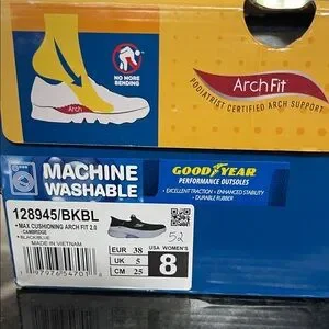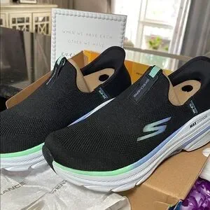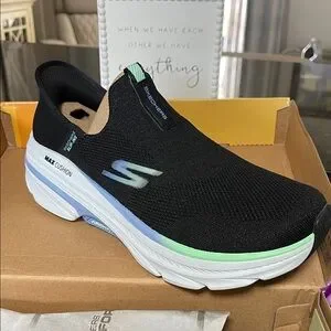 Skechers Black and Blue Max Cushion arch fit Slip-Ons
