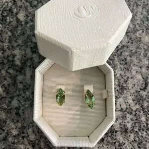 Enhance your style with these chic Swarovski green marquise stud earrings. Perfect for any event and can be dressed up or down. Worn only once for maternity shoot. Box has small imperfection but earrings are absolutely stunning!