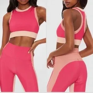Beach riot Gwen bra top in pink tan rouge colorblock medium NWOT