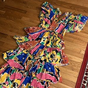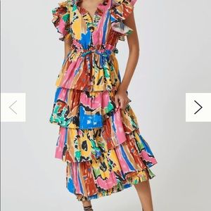 LOVE THE LABEL sz S Anthropologie Gorgeous 100% cotton tiered ruffled midi dress