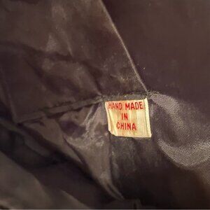 VINTAGE HANDMADE WOMENS CROSSBODY SHOULDER BEADED BAG BLACK SATIN BROWN GOLD RED PEACOCK BEADS LONG BRAIDED CORD SNAP FLAP