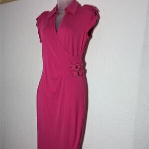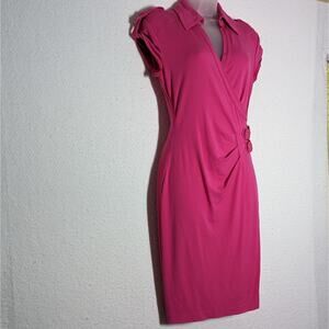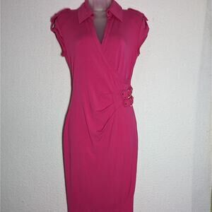 Rare Vtg Cache Hot Pink Womens Sz Medium Dress with Cap Sleeves Wrap Style Jersey Knit Dress.