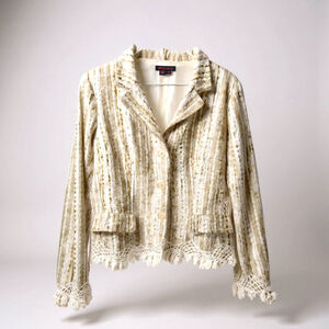 Simon Chang Beige Lace Trim Blazer Jacket Size 10