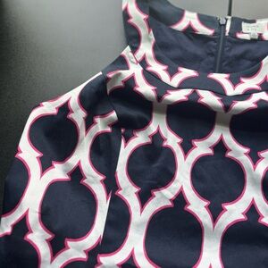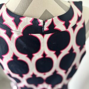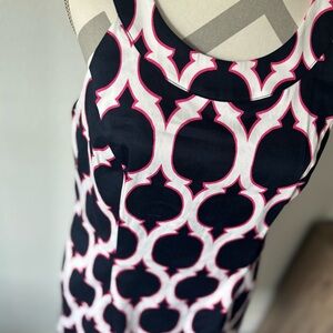 Crown & Ivy geometric sheath dress 10, sleeveless office dress, preppy summer shift dress, navy white red print dress