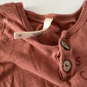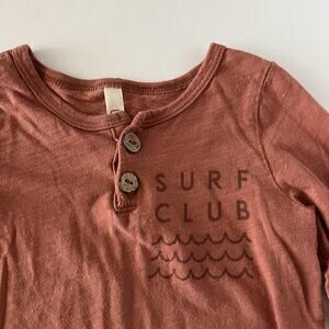 Super cute reddish brown/rust henley with “surf club” and waves on front from Childhoods. Size 4T. Mild wash wear.