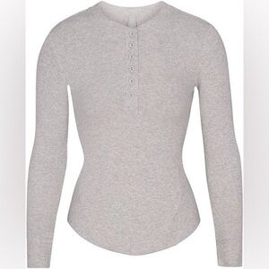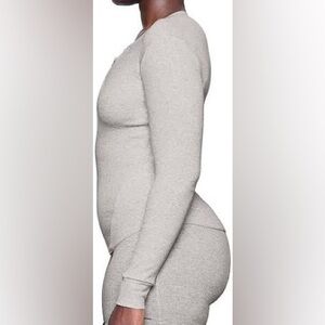 SKIMS Cotton Rib Henley | Light Heather Grey | Size XL