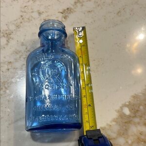 Milk of Magnesia blue glass bottle vintage charm Perfect for displaying on a shelf or as a unique accent piece.