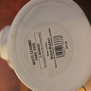 Hand Vase - White/Ceramic - World Market - Approximately 10.5"