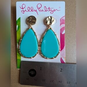 Elegant teardrop earrings in vibrant turquoise with gold accents. Perfect for adding a pop of color to any outfit.