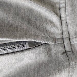Zippered side pockets, tapered at ankle in heathered grey (light) as shown. Slim fit. Mini pocket located at the back of the waistband. Flat front, no drawstring. It's Rulu Run style I removed the tag as I find the placement annoying! Almost new condition.