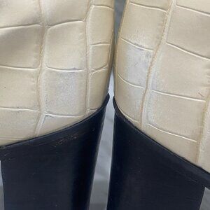 Schutz Womens 7B Analeah Knee-High Boots Croc Embossed Leather Egg Shell Western