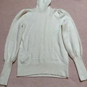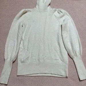 Ralph Lauren Cream cashmere Turtleneck Sweater with Puffed Sleeves