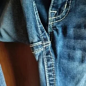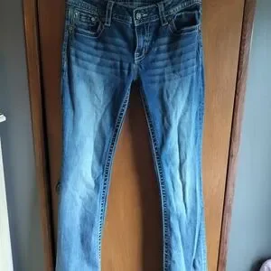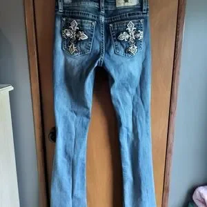 Gorgeous boot cut jeans with embroidered cross and rhinestone detail size 28x34