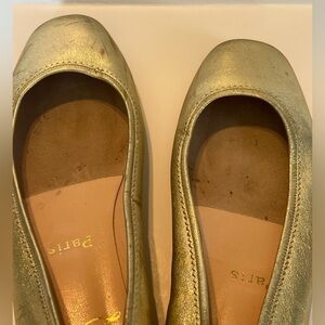 CHRISTIAN LOUBOUTIN GOLD METALLIC LEATHER BALLET FLATS SZ 37.5