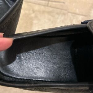 Louis Vuitton Hockenheim Damier Black Loafers size 8 1/2. These are preowned with light creasing and scuffs on exterior. They have been stored in their dust bags. Please see photos for the best description. I’m happy to take more photos and answer questions.