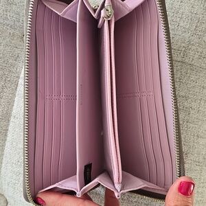 EUC! GORGEOUS croc style leather wallet by Coach with vintage stagecoach emblem. Hardware silver. Zip around. 12 card slots 5 bill slots. 1 zippered change pocket. Lavender interior.