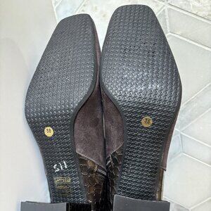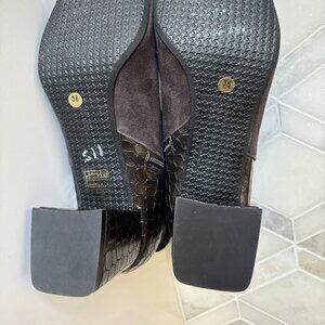 Ron White 38/7.5 Ankle Boot Zipper Block Heel Linzi Brown Croc Cashmere Suede