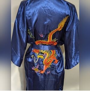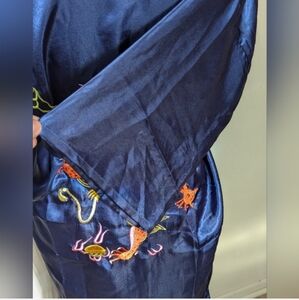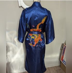 Golden Dragon Bathrobe Kimono Size Large Blue Silky Vintage