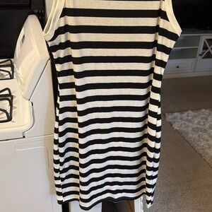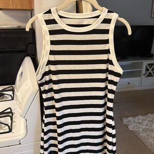 Chic and versatile, this black and white striped sleeveless dress is perfect for any occasion. Enjoy a comfortable fit with its stylish design. Brand new