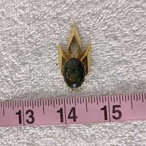 Great vintage condition. Minor signs of wear shown in pics. Please look at all pics and zoom in for a closer view. Measurements in pics. Gold tone metal. Sunstone center, cannot confirm if real or faux. Vintage Gold Tone Necklace Pendant With Black Sunstone Costume Jewelry Pendant US