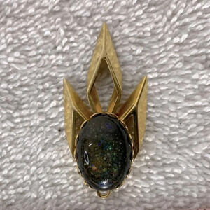 Vintage Gold Tone Necklace Pendant With Black Sunstone Costume Jewelry Pendant