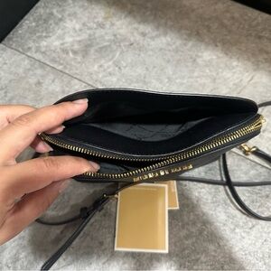 Used a handful of times. Chic Michael Kors crossbody bag. Features sleek black leather and gold chain accents. Ideal for day or night.