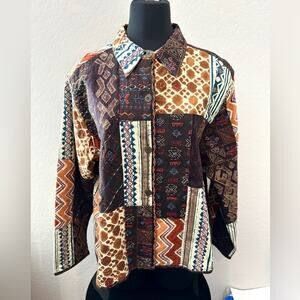 CHICO’S Vintage Patchwork Tribal Print Jacket Multicolor Button Front!