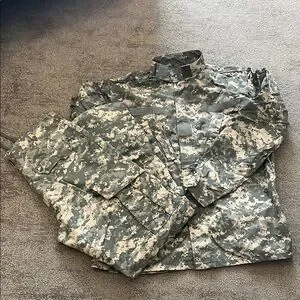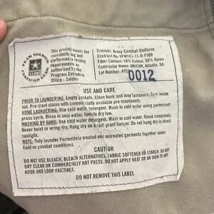 Certified Army Combat Uniform. Great preowned condition. Please note stain on knee that could be possibly spot treated. Inconspicuous and barely noticeable. Please tags in pictures for measurements.