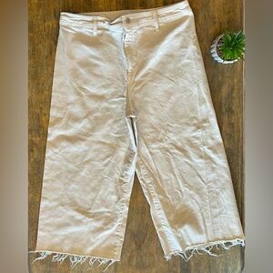 Wide Leg Cropped Jeans Women’s Size 16 white Raw Hem Denim Pants Y2K Minimalist