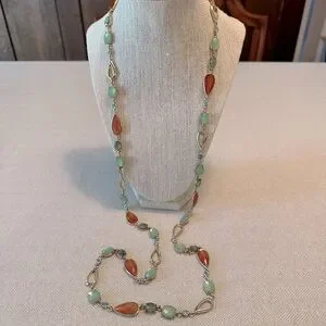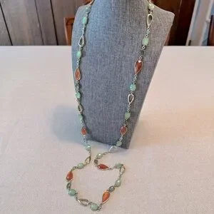 Anne Klein 40" Long Layering Necklace Peach, Green & Turquoise Blue Stations