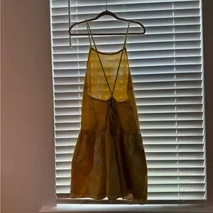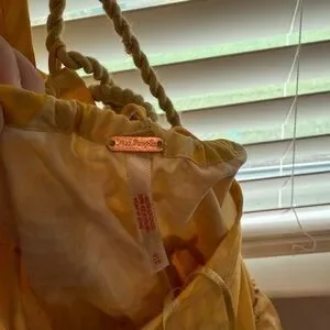 Bright yellow sundress with floral pattern. Perfect for sunny days. Pockets on front and tie details on back. NEW WITH TAGS.