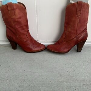 Vintage 70s 80s Rust Red Leather Distressed Rugged Heeled Western Cowgirl Boots