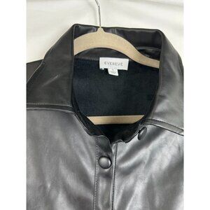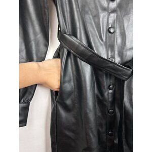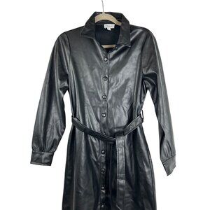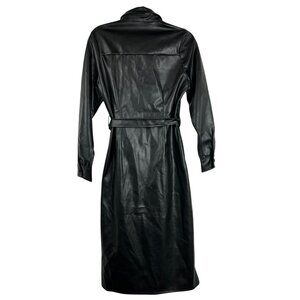 Evereve Small Womens Black Vegan Faux Leather Button Up Midi Dress Trench