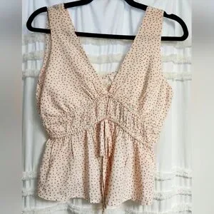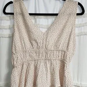 Chic and stylish sleeveless top with a playful polka dot pattern. Perfect for casual outings or a day at the office. Enjoy comfort and fashion in one piece.