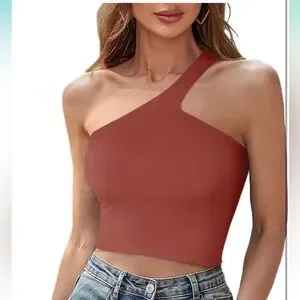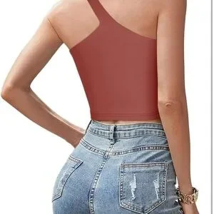 🌸Versatile,can be wear in many different ways!This backless one shoulder crop tops for teen girls/women is cute and chic. Cute with yoga pants,joggers,skirts or high waist jeans!