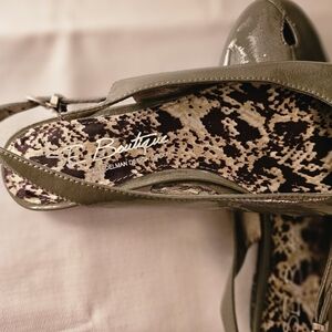 Materials are vegan patent, leather, and insole padded leather.