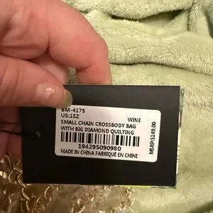 Chic burgundy crossbody with quilted design. Features gold-tone logo detail. Perfect for stylish outings.