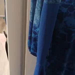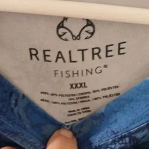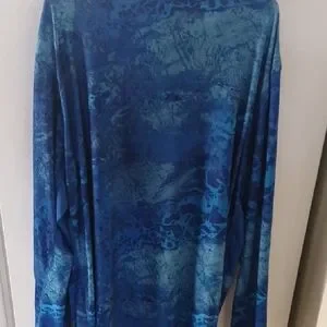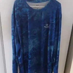 Stylish Realtree long sleeve tee. Features a blue pattern. Comfortable and versatile.