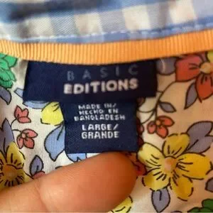 H7 Basic editions shirt Womens L large Floral Sleeveless Button-Up Top