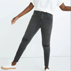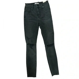 Madewell Black Curvy High Rise Skinny Distressed Knee Jeans Size 24 NWT