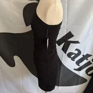 GOOD American Good Touch Ruched One Shoulder Mini Dress Black Size Medium