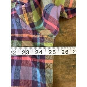 The Alan Flusser Button Down Collar Shirt in Men's size Large features a colorful check plaid pattern, long sleeves, button closure, and a collared neckline. Made from cotton fabric, this shirt is perfect for various occasions such as travel, parties, or casual wear. With a modern and colorful theme, this shirt is suitable for all seasons and includes a pocket for added functionality. Perfect for adding a pop of color and style to any outfit.