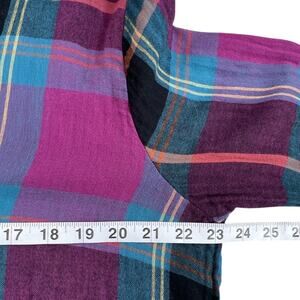 Natural Life Plaid Flannel Tunic Top Purple Black Sz Large Comfy Pockets
