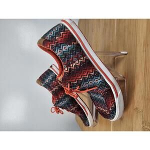 Women's casual sneakers by Twisted X featuring a vibrant, multicolor zigzag pattern.