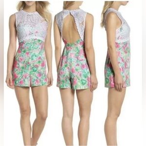 Rare Lilly Pulitzer Sadie Romper White Lace Raz Berry Catty Shack Sz 6 $198