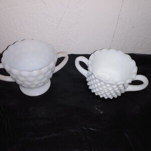 Hobnail Milk Glass Sugar Bowl & Vintage Anchor Hocking Milk Glass Bubble sugar