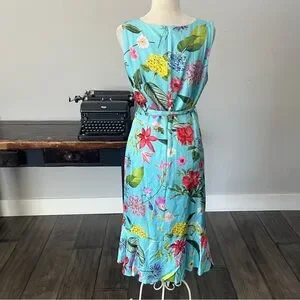 Talbots RSVP Occasion Collection Blue Floral Fit & Flare Dress - Size 12