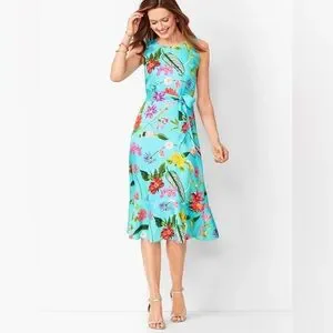 Part of Talbots RSVP Occasion Collection. A floral pattern that's so vivid it's like wearing a photograph. This soft and breezy fit & flare dress is perfect for an outdoor wedding - just add heels! Lined. Invisible Back Zip. Side Seam Pockets.
