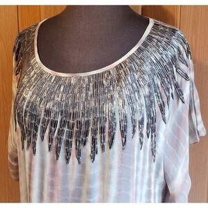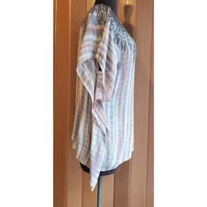 Velvet by graham and spencer size medium capped sleeve red & blue mesh blouse